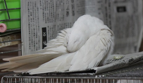 (夜、籠の中で寝ない時は大体この場所で寝ています)